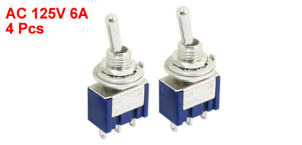 4Pcs Blue Two Positions 3-Pin SPDT ON-ON Mini Toggle Switch 6A AC125V
