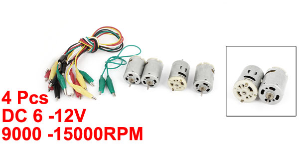 4Pcs DC 6-12V 9000-15000RPM 2 Terminals Miniture Motor w Alligator Clip Cable