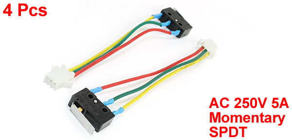 Product Name Micro Switch Rated Voltage & Current AC 250V 5A Contact Type Momentary Actuator Type Short Hinge Lever Connector Type Female 3 Pin Contact configuration SPDT (1NO 1NC) Switch Body Size 20 x 13 x 6.5cm/ 0.8" x 0.51" x 0.26"(L*W*T) Lever Size 1.7 x 0.4cm/ 0.7" x 0.16"(L*W) Total Length 110mm/4.3" Material(External) Plastic, Metal Color Black, Yellow, Red, Green weight 17g Package Content 4Pcs x Water Heater Micro Switch - Reviews