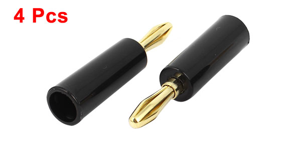 4pcs Gold Plate Audio Speaker 5mm Dia Male Banana Plug Connector Black