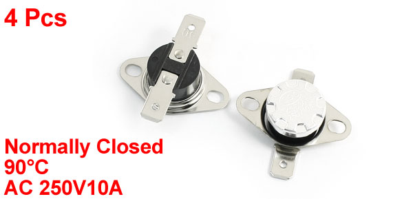 Product Name Temperature Control Switch Model.No KSD301 Action Type Normally Closed(NC) Action Temperature 90°C Voltage & Current AC 250V, 10A Total Size (Each) 34 x 18 x 12mm / 1.3" x 0.71" x 0.47"(L*W*H) Mounting Hole Size 4.5 x 3.5mm/0.18" x 0.14"(L*W) Material Metal, Plastic Color Black, Silver Tone Total Weight 19g Package Content 4 x Temperature Control Switches - Reviews