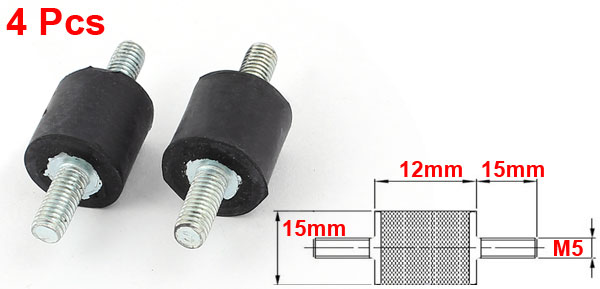 Product Name Rubber Vibration Isolator Mounts Material Metal, Rubber Male Thread Size (Approx.) M5 x 12mm(Dia.* L) Rubber Size (Approx.) 15 x 15mm / 0.6" x 0.6" (Dia.*H) Overall Height(Approx) 38mm / 1.5" Color Black, Silver Tone Weight 34g Package Content 4pcs x Rubber Vibration Isolator Mounts - Reviews