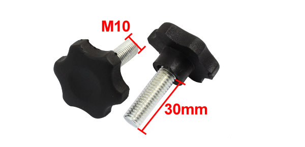 Product Name Clamping Knob Thread Hole Inner Dia. M10 Thread Length 30mm/ 1.2" Star Head Diameter 40mm/ 1.6" Total Height 50mm/ 2" Material Metal, Plastic Color Black, Silver Tone Weight 140g Package Content 4 Pcs x Clamping Knob - Reviews