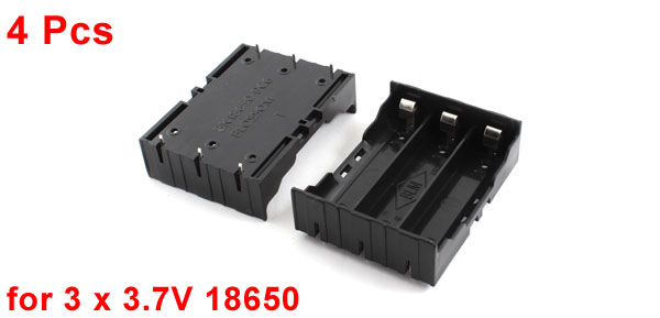 4Pcs Open Frame Black Plastic Battery Case Holder Box for 3 x 3.7V 18650