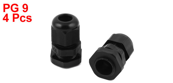4Pcs PG9 4-8mm Range Waterproof Black Plastic Wire Connect Cable Glands