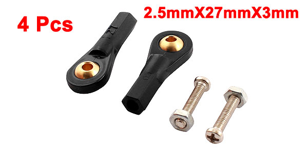 4Pcs RC Car Black 2.5X27X3mm Rod End Metal Ball Head Buckle Joints Set w Screws