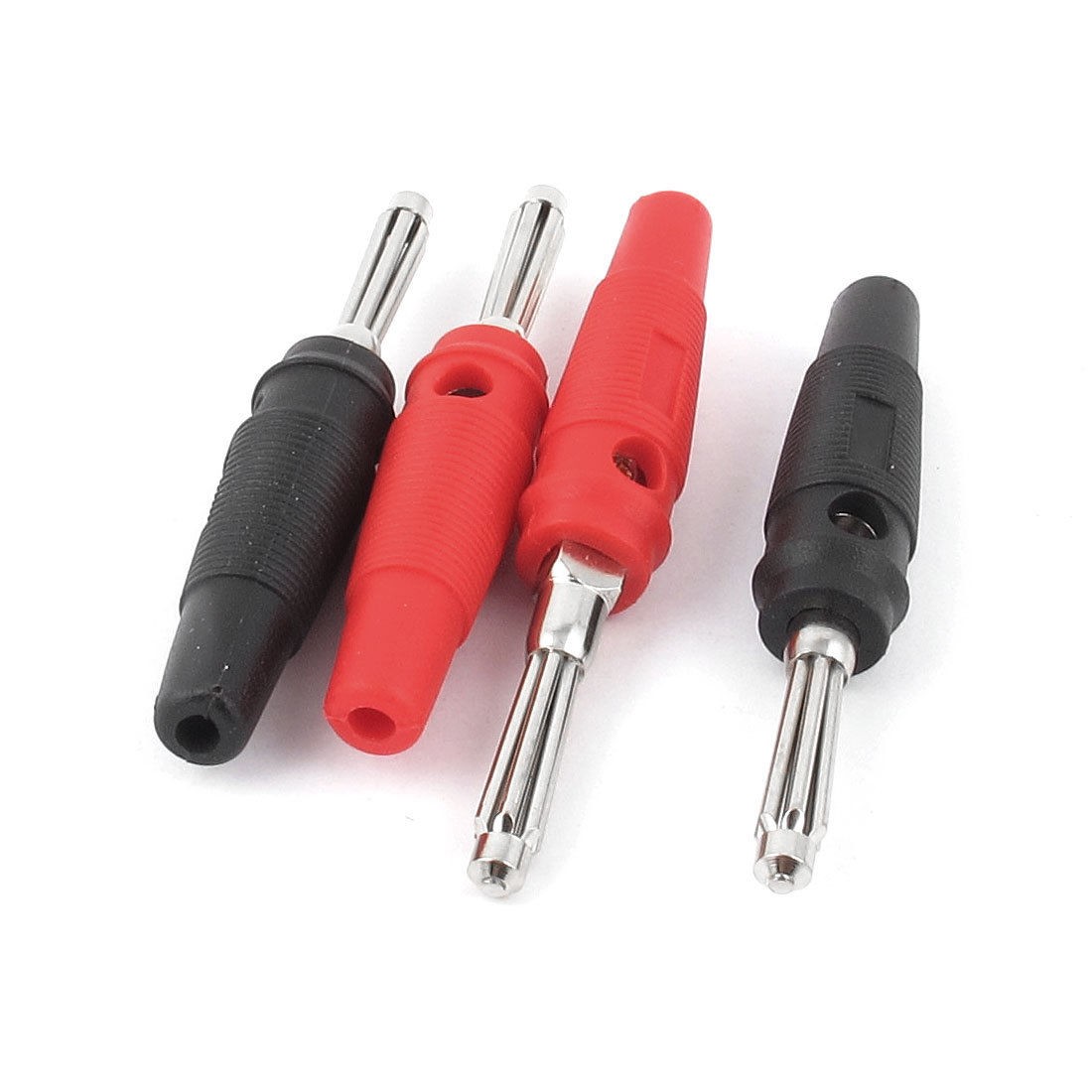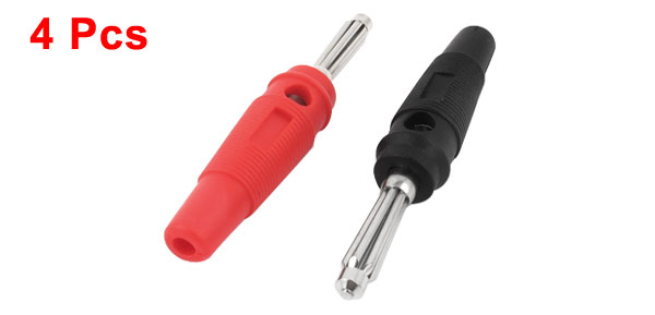 Product Name Banana Plug Fit for Wire Size 4mm / 0.16" Plug Size 4mm / 0.16" Size 60 x 10mm / 2.3" x 0.39"(L*Max.D) Material Metal, Plastic Color Red, Black, Silver Tone Total Weight 27g Package Content 4 x Banana Plug - Reviews