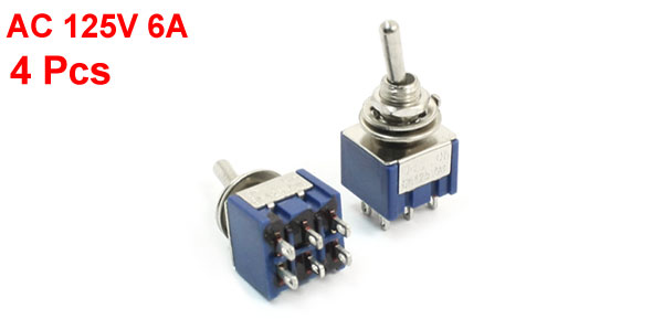 4Pcs Switching Light Toggle Switches ON/ON 6Pins DPDT AC 125V 6A