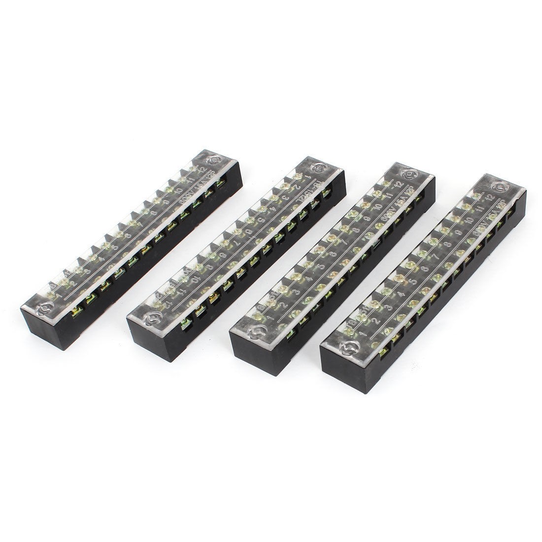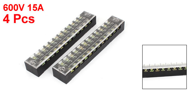 4PCS TB-1512L Two Rows 12 Position Clear Covered Barrier Terminal Block 600V 15A