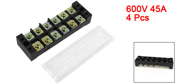 4PCS TB-4506L 600V 45A Dual Rows 6P Covered Barrier Screw Terminal Block