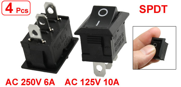 Product Name Rocker Switch Poles SPDT Terminals 3 Pin (On-On) Rating Voltage AC 250V 6A AC 125V 10A Total Size(Each One) 2.1 x 1.5 x 2.5cm/ 0.82" x 0.6" x 1"(L*W*T) Mounting Size 1.8 x 1.2 x 2cm/ 0.7" x 0.47" x 0.78"(L*W*T) Color Black Material Plastic, Metal Total Weight 15g Package Content 4 x Rocker Switch - Reviews