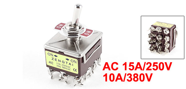 4PDT 12 Terminals On-On 2 Position Toggle Switch AC 15A/250V 10A/380V