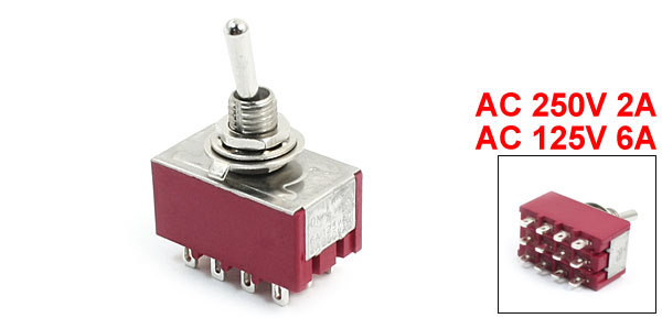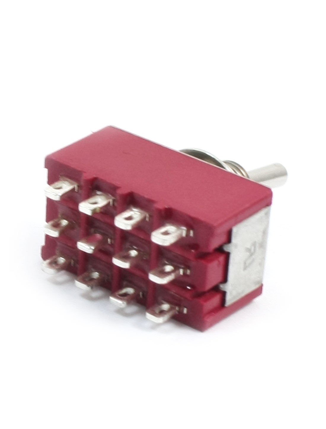 Details4PDT 2 Positions Latching 12-Terminals Toggle Switch AC250V 2A 125V 6A  Product Name Toggle Switch Type 4PDT (Latching) Position 2 Positions(ON/ON) Voltage, Current AC 250V 2A