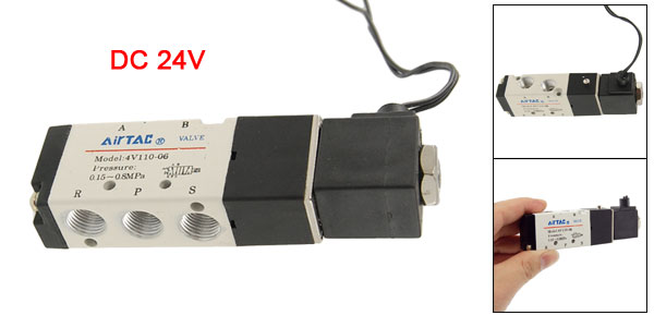Product Name Solenoid Valve Model 4V110-06 Type 5 Way 2 Position Voltage DC24V Operating Pressure 0.15-0.8MPa Thread Diameter 1/8" Total Size (Approx.) 9.5 x 2.7 x 1.8cm / 3.7" x 1.1" x 0.7"(L*W*T) Cable length 30cm / 11.8" Material Metal, Plastic Color As Picture Shown Weight 110g Package Content 1 x Solenoid Valve - Reviews