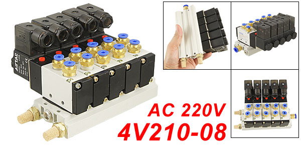4V210-08 AC 220V 2 Position 5 Way 5 Solenoid Valve Connected Base Muffler