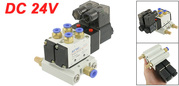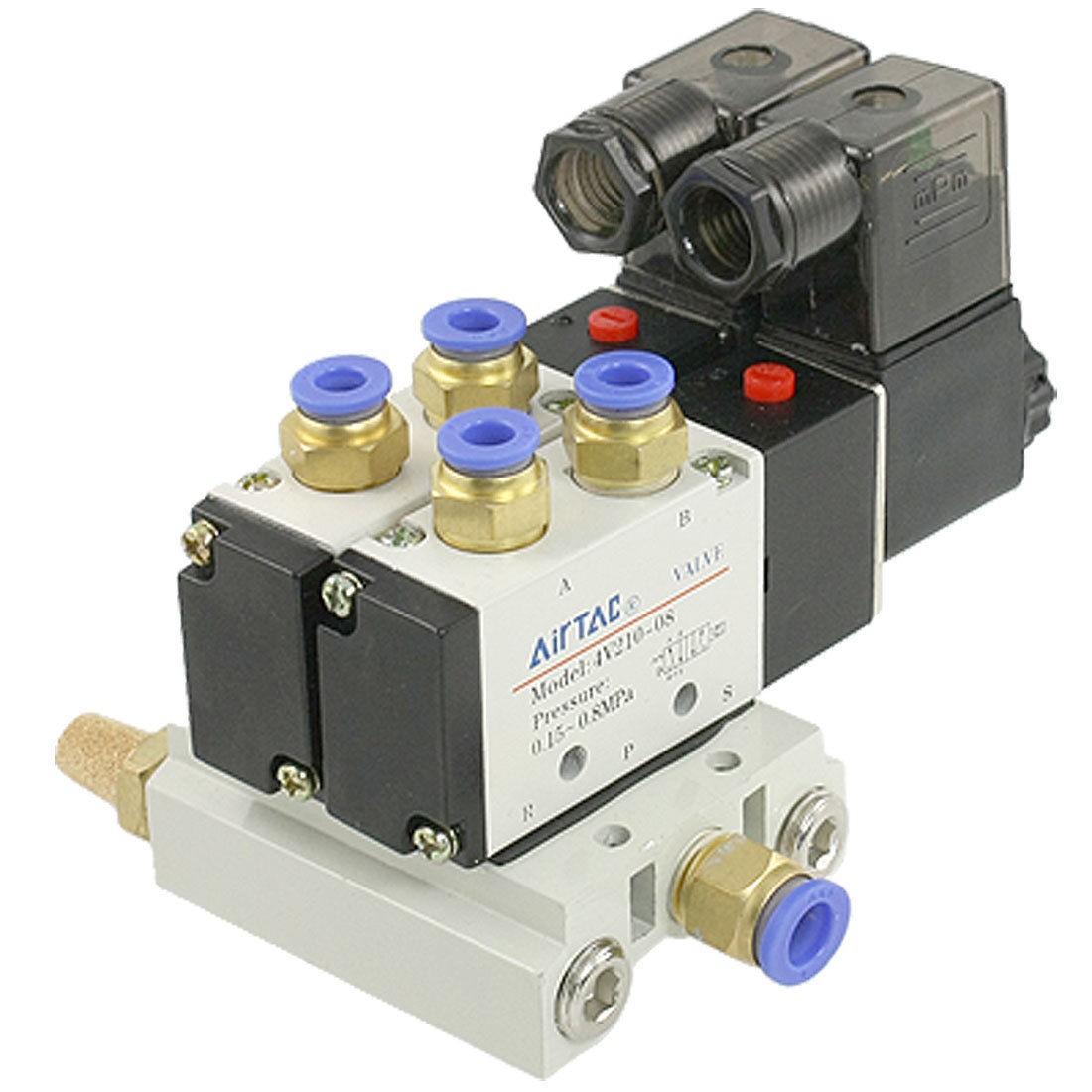 4V210-08 DC 24V 2 Positions Solenoid Valve Base Quick Fittings Mufflers Set