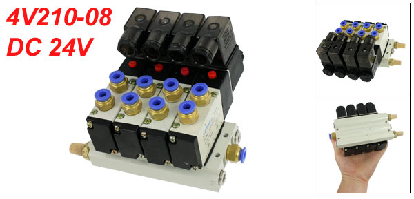 4V210-08 DC 24V Quadruple Solenoid Valve Mufflers 6mm Quick Fittings Base Set