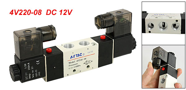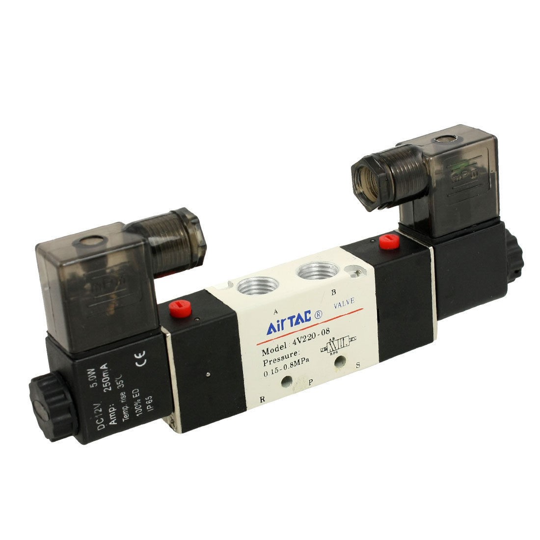 4V220-08 DC 12V 2 Positions 5 Ways Air Control Solenoid Valve