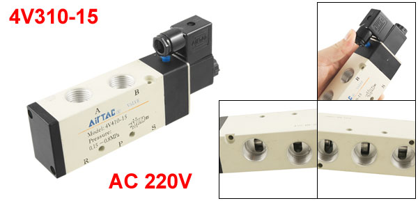 4V310-15 1/2" PT 2 Position 5 Port Solenoid Valve AC 220V 24mA