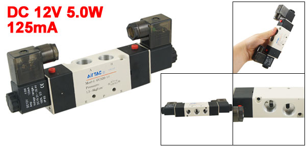 4V320-10 DC 12V 125mA 2 Positions 5 Ways Air Control Solenoid Valve
