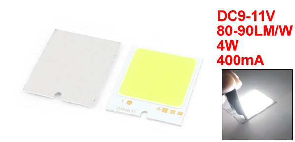 Product Name COB LED Lamp Beads Rated Voltage DC9-11V Luminous Flux 80-90LM/W Color Temperature 6500-7000K Power 4W Current 400mA Light Color White Material Aluminum Color Silver Tone, Yellow Size 40 x 35mm/ 1.6" x 1.4" (L*W) Luminous Surface 30 x 30mm/ 1.2" x 1.2"(L*W) Weight 52g Package Content 10 x COB LED Lamp Beads - Reviews