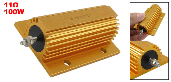 Product Name Aluminum Resistor Resistance Value 11 Ohm Power Rating 100W Resistance Tolerance ± 5% (J) Mounting Hole Dia 0.5cm/0.2" Mounting Hole Distance 3.7 x 3.5cm/1.4" x 1.3"(L*W) Plate Size 6.5 x 4.7 x 0.3cm/2.5" x 1.8" x 0.1" (L*W*H) Body Size 8.8 x 2.6cm/ 3.4" x 1" (L*D) External Material Aluminum Color Gold Tone Net Weight 98g Package Content 1 x Aluminum Resistor - Reviews