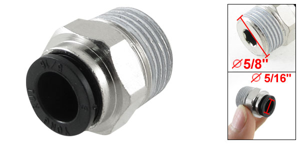 Product Name Pneumatic Quick Fitting Type Straight One Touch Connector 8mm/ 5/16" Thread Connector 16mm/ 5/8" Material Plastic, Metal Size(Approx.) 2.1 x 1.8cm/ 0.8" x 0.7"(L*W) Main Color Black Weight 19g Package Content 1 x Pneumatic Quick Fitting - Reviews