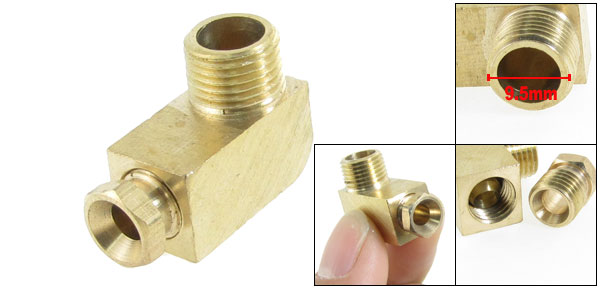 Product Name Brass Connector Design Elbow, 2 Way Hole Diameter 4mm/ 5/32" Male Thread Diameter 9.5mm/ 3/8" Overall Size 25 x 10 x 17mm/ 1" x 0.39" x 0.67" (L*W*T) Material Brass Color Gold Tone Net Weight 16g Package Content 1 x Brass Connector - Reviews