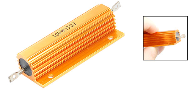 Product Name Aluminum Resistor Resistance Value 33 Ohm Power Rating 100W Resistance Tolerance ± 5% (J) Total Size 8.3 x 2.1 x 1.5cm/ 3.2" x 0.8" x 0.6" (L*W*H) Body Size 6 x 1.5cm/ 2.4" x 0.6" (L*D) External Material Aluminum Color Gold Tone Net Weight 31g Package Content 1 x Aluminum Resistor - Reviews