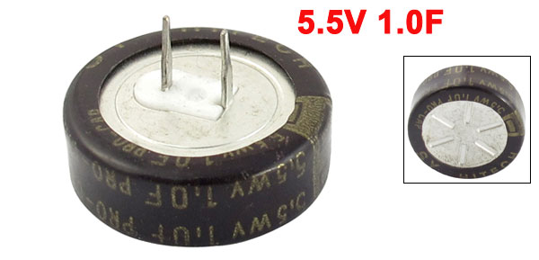 Product Name Farad Ultra Capacitor Maximum Operating Voltage 5.5V Capacitance Value 1.0F Capacitance Tolerance ±30% Operating Temperature Range -25°C to +70°C ESR 30Ω Terminal Type C Type Mounting Type Through Hole Lead Type Radial Lead Lead Sapcing 5mm / 0.2" Body Size (Approx.) 20 x 7mm / 0.79" x 0.28" (D*H) Total Height 13.5mm / 0.52" Weight 9g Package Content 1 x Farad Ultra Capacitor - Reviews