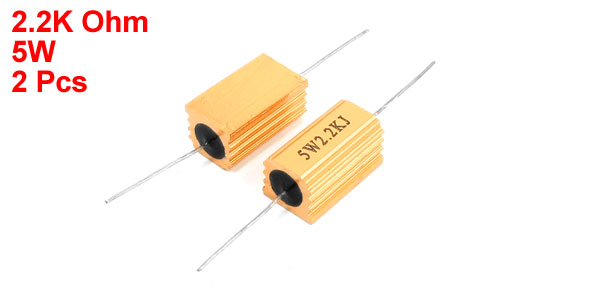 Product Name Aluminum Resistor Resistance Value 2.2K Ohm Power Rating 5W Resistance Tolerance ± 5% (J) Lead Dia 0.8mm/0.0315" Total Length 75mm/3" Body Size 19 x 11 x 10mm/0.75" x 0.43" x 0.39"(L*W*T) External Material Aluminum Color Gold Tone Net Weight 10g Package Content 2 x Aluminum Resistor - Reviews