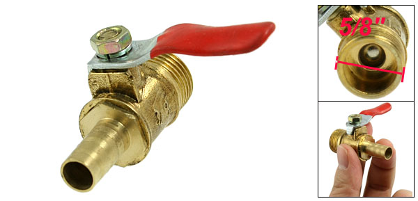 Product Name Ball Valve Male Thread Diameter 16mm/5/8'' Ball Hole Diameter 6mm/0.24'' Hole Tail OD 8mm/0.31'' Level Handle Size 44 x 11mm/1.7'' x 0.43'' (L*W) Overall Size 42 x 16 x 28mm/1.6'' x 0.63" x 1.1"(L* W*H) Main Color Gold Tone & Red Material Metal, Brass, Plastic Weight 33g Package 1 x Ball Valve - Reviews