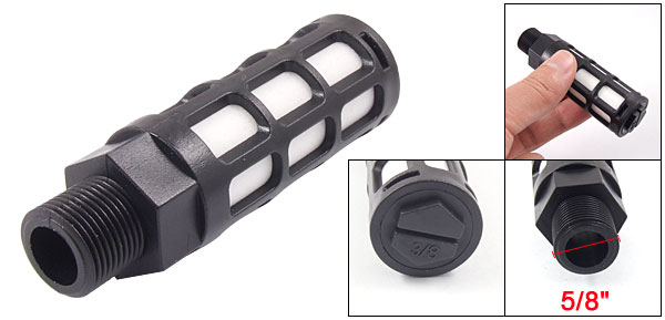 16mm/ 5/8" Overall Size(Each) 80 x 24mm/1 3/5" x 1/2"(L*Max.D) Material Plastic Main Color Black Net Weight 20g Package Content 1 x Pneumatic Silencer Muffler - Reviews