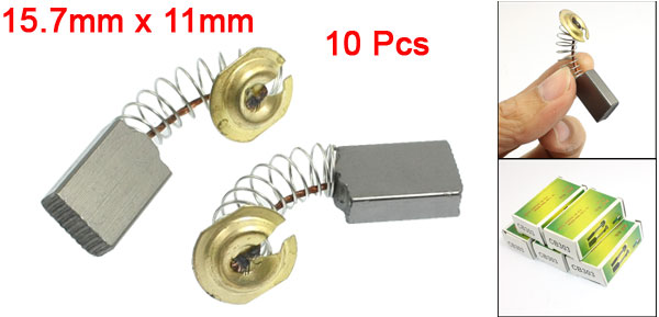 Product Name Carbon Brush Carbon Brush Size 15.7mm x 11mm x 4.8mm / 5/8" x 7/16" x 3/16"(L*W*T) Total Length(Approx) 42mm/1.65'' Material Carbon,Metal Color Black,Gold Tone Net Weight 43g Package Content 10 Pcs x Carbon Brush - Reviews