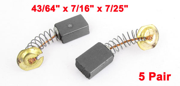 Details5 Pair 43/64" x 7/16" x 7/25" Motor Carbon Brushes for Electric Drill  Product Name Motor Carbon Brush Fitness Generic Electric Motor Carbon Brush Size (Approx) 17 x 11 x 7mm/ 43/64" x 7/16" x 7/25"(L*W*H) Total Length(Approx) 44cm/ 1.7“ Weight 33g Package Content 5 Pairs x Motor Carbon Brush