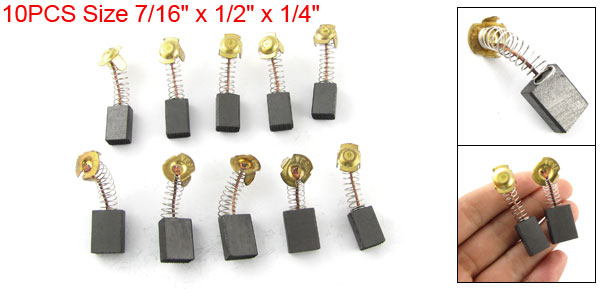 Product Name Motor Carbon Fitness Generic Electric Motor Carbon Brush Size (Approx) 7/16" x 5/16" x 3/16" (L * W * H) Total Length(Approx) 1 1/2"(When Spring Stretching) Net Weight 39g Package Content 10PCS x Motor Carbon - Reviews