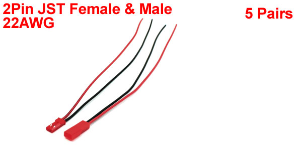 5 Pairs 22AWG 200mm Wire Cable w 2Pin JST M F Connector for RC Battery Motor
