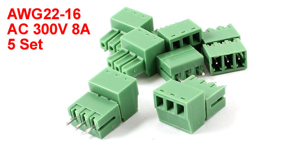 5 Pairs 3 Pin 3.81mm Screw Pluggable Terminal Block Connector 300V 8A