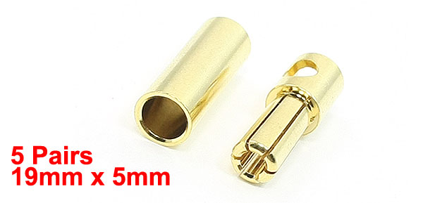 5 Pairs Gold Tone Metal RC Battery Plug Female Male Connector 5mm