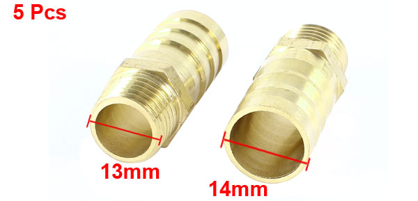5 Pcs 1/4 PT Male Thread to 14mm Hose Barb Air Quick Fitting Coupler Copper Tone