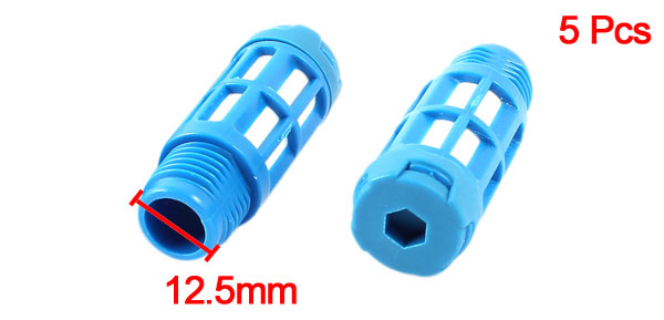 5 Pcs 1/4PT Plastic Pneumatic Valve Exhaust Noise Reducing Silencer Muffler Blue