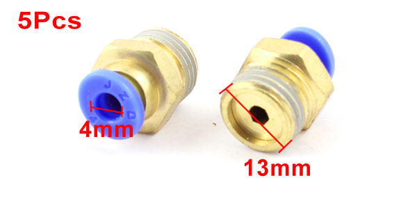 5 Pcs 1/4" PT Male Thread 4mm Push In Joint Pneumatic Connector Quick Fittings