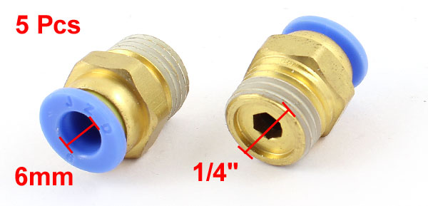 5 Pcs 1/4" PT Male Thread 6mm Push In Joint Pneumatic Connector Quick Fittings