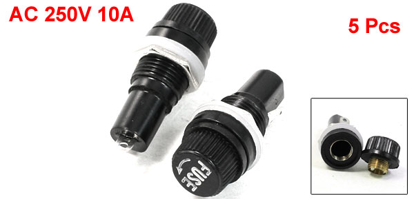 Item Name Panel Mounted Fuse Holder Fit for 5 x 20mm / 0.2" x 0.8" Fuses Maxi. Withstand 10A 250VAC Material Plastic and Metal Color Black Size 1.6 x 4cm / 0.63" x 1.6" ( Diameter * Length) Weight 26g Package Content 5 x Panel Mount Fuse Holder - Reviews