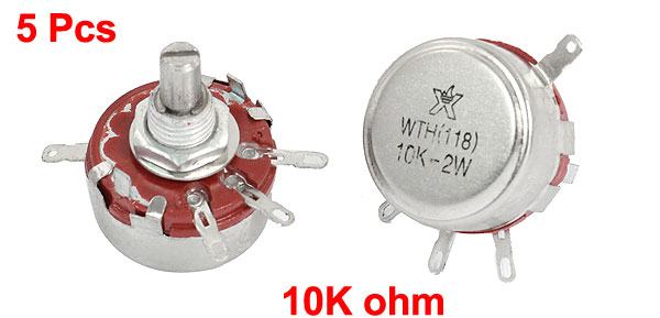 5 Pcs 10K ohm 2W Watt Round Shaft 4 Pins Rotary Carbon Potentiometer WTH118