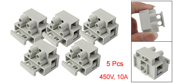 5 Pcs 10mm Pitch 2 Position Fused Terminal Block Gray