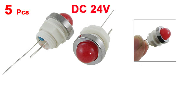 5 Pcs 10mm Red LED Indicator Light Pilot Signal Lamp Light DC 24V