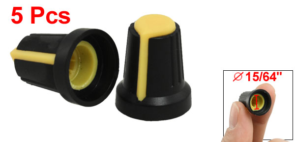 Product Name Potentiometer Control Knob Knob Top Diameter 10mm / 0.39" Knob Base Diameter 14.5mm / 0.57" Shaft Insert Diameter 6mm / 15/64" Knob Total Height 17.5mm / 0.69" Material Plastic Main Color Black, Yellow Weight 6g Package Included 5 x Potentiometer Control Knob - Reviews