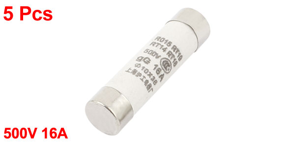 Product Name Fuse Link Model No. R015 RT19 RT14 RT18 Rated Voltage 500V Rated Current 16A Size 10 x 38mm / 0.39" x 1.5"(D*L) Material Ceramic, Metal Main Color White, Silver Tone Net Weight 27g Package Content 5pcs x Fuse Links - Reviews