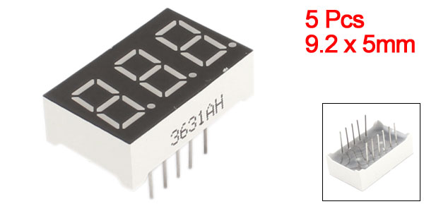 Product Name Common Cathode LED Digital Tube Type Common Cathode Emitted Color Red Pin Number 11 Pin Pitch 2.54mm/0.1" Display Bit 3 Size(No INclude Pin) 23 x 14 x 6mm / 0.91" x 0.55" x 0.24" (L*W*H) Display Size 9.2 x 5mm/0.36" x 0.2"(L*W) Material Plastic, Metal Color Black, White Net Weight 14g Package Content 5Pcs x LED Digital Tubes - Reviews